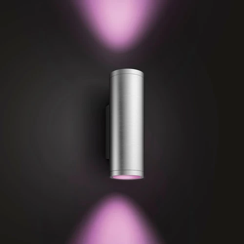 Beleuchte deine Terrasse oder deinen Gartenweg mit den Philips Hue Appear Edelstahl Doppelpack Außenwandleuchten. In diesen Lampen sind zwei Spots eingebaut: Der eine strahlt auf den Boden und der andere nach oben. So sorgst du beispielsweise für eine schön beleuchtete Terrasse. Die eingebauten LED-Lampen liefern Licht in 16 Millionen Farben und allen Weißtönen. So kannst du immer das Licht auswählen, das zu deiner Aktivität passt. Die Beleuchtung lässt sich über die Hue-App bedienen. Damit kannst du auch festlegen, dass die Lampen automatisch eingeschaltet werden, wenn du nach Hause kommst. Oder du verknüpfst die Lampen mit dem Sonnenuntergang, damit dein Garten immer beleuchtet bleibt.