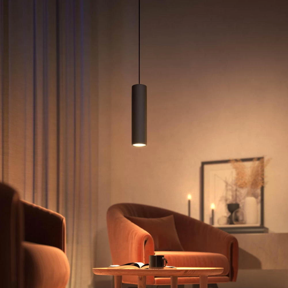 Die Philips Hue Pendelleuchte hat eine Leistungsaufnahme von nur 5,2 Watt und ist damit sehr energiesparend. Mit der stufenlosen Dimmtechnologie kannst Du die Helligkeit per App-Steuerung oder Fernbedienung an Dein individuelles BedĂĽrfnis anpassen. Das macht sie nicht nur effizient, sondern auch perfekt fĂĽr gemĂĽtliche Abendstunden.