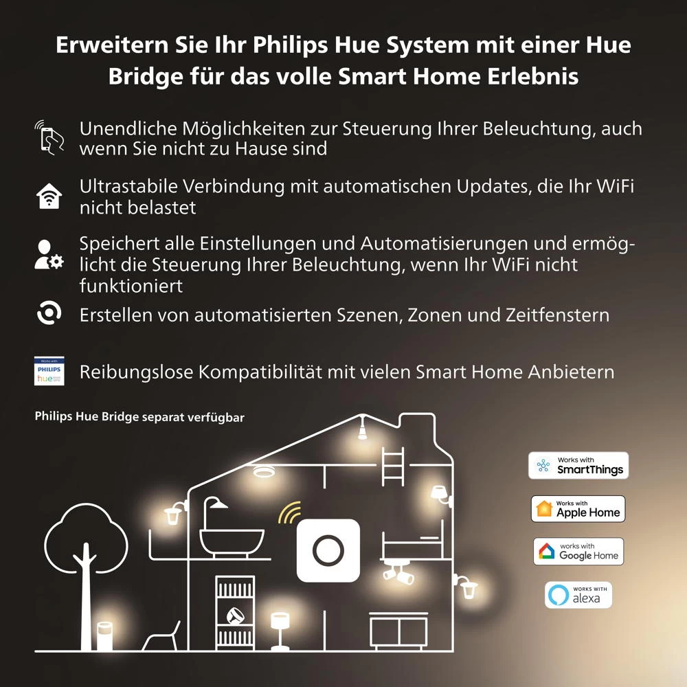 Valeto und SMART+ kombiniert werden. Mit dem Philips Hue System und der Datenübertragung via Bluetooth und WLAN sowie dem Protokoll ZigBee lässt sich die Beleuchtung unkompliziert steuern. Die Being-Pendelleuchte ist außerdem kompatibel mit Amazon Alexa, Apple HomeKit und Google Assistant und kann somit bequem per Sprachsteuerung bedient werden.