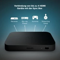 Dank der vier HDMI-Anschlüsse verbindest du all deine Wiedergabegeräte oder Konsolen mit deinen Hue Smart-Lampen.