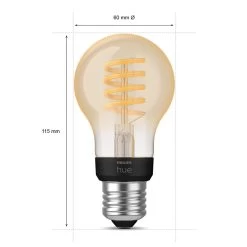 Die LED-Lampe mit E27-Fassung aus der Philips Hue Produktfamilie bietet smart steuerbares Licht in verschiedenen Weißtönen. Sie ist im Stil alter Glühbirnen in Filamentoptik designt und kann wunderbar offen in Leuchten eingesetzt werden. Die Steuerung der LED-Lampe erfolgt entweder über den Hue Dimmschalter, mit dem Smartphone/Tablet direkt via Bluetooth oder in einem Smart Home System nach ZigBee-Einbindung. Neben dem klassischen Ein/Aus kann die Lampe gedimmt oder in verschiedene Weißtöne geschaltet werden.