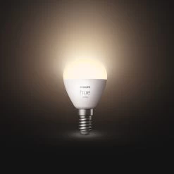 Philips Hue White E14 Tropfenlampe mit warmweiĂźer Lichtfarbe, 5,7W